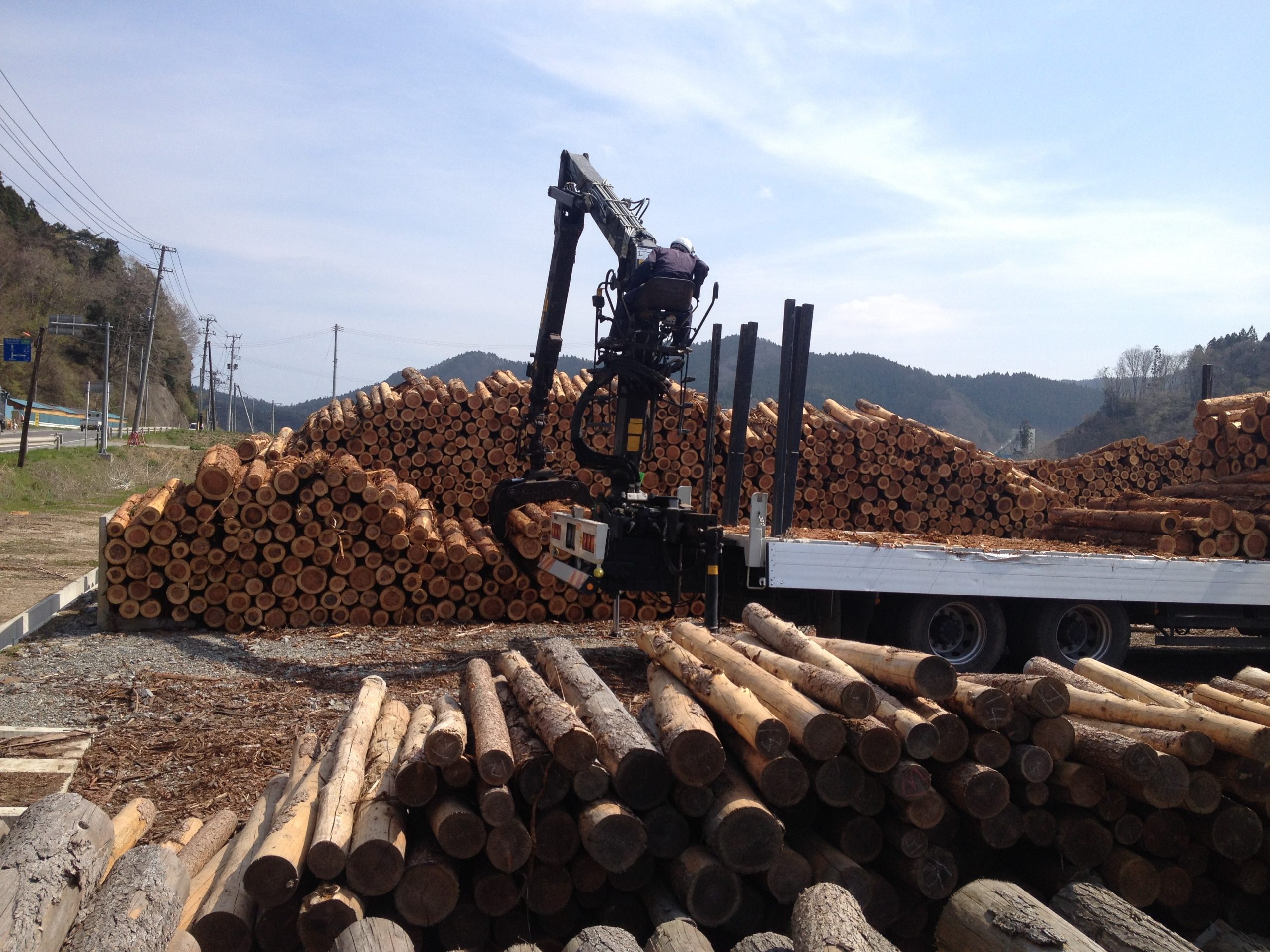 陸前高田丸太積み下ろし